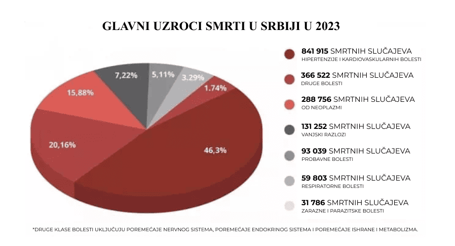 Razlog za ovaj apel bila je zastrašujuća statistika. Više od 70% građana Србије starijih od 40 godina pati od hipertenzije. A 2023. sumirani su statistički podaci iz kojih se ispostavilo da u 93% slučajeva hipertenzija dovodi do krvnih ugrušaka i fatalnih posljedica.